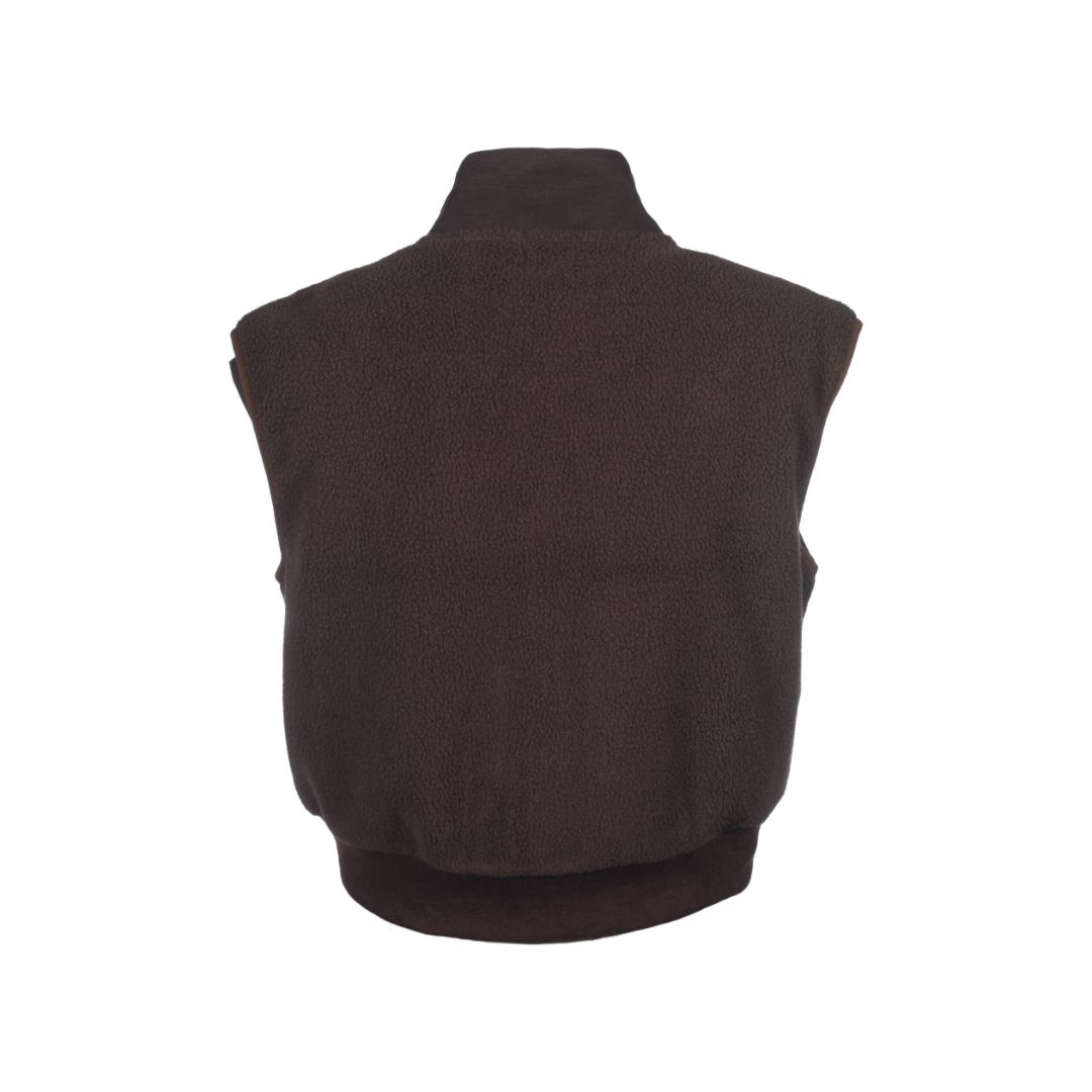 Lækker teddy vest fra Lauria Garrelli. Den har en flot mørkebrun farve, med rib kant. Den er cropped, og har 2-vejs lynlås.