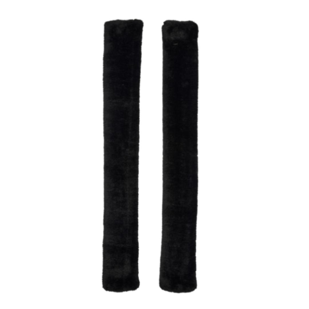 Tøjlebeskyttere i sort syntetpels fra Horse Guard. De er 50 cm lange og kommer i en pakke med 2.