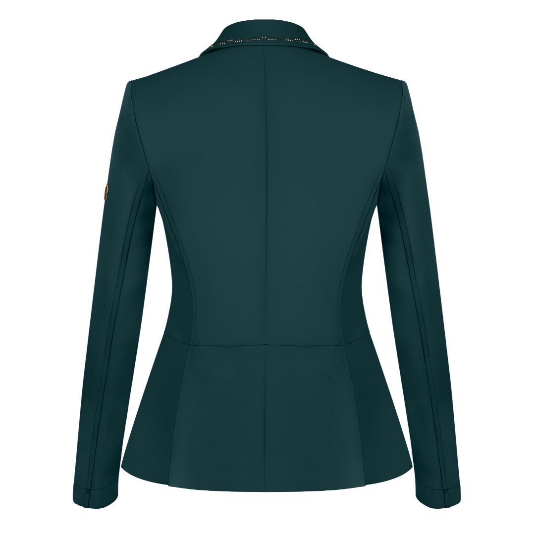 Fair Play Natalie stævnejakke med vintage guld detaljer. Det er en sporty og elegang stævnejakke, lavet af et åndbart og elastisk COMFINAT-tech materiale. Jakken er dekoreret med vitage guld, og sorte rhinestones på kraven. Den jar to lommer med lynlås. Jakken lukkes med lynlås, samt knapper i vintage guld.