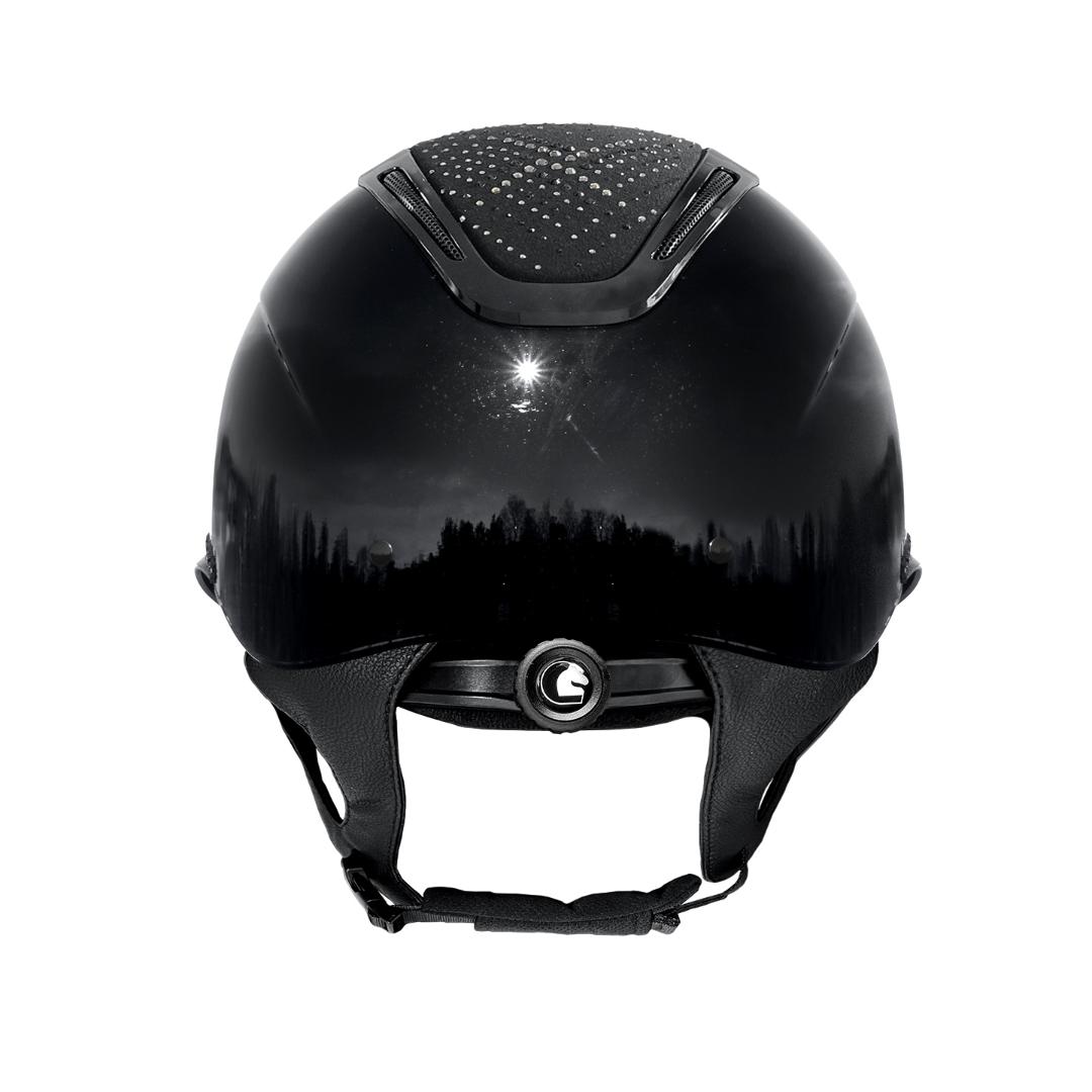 Smart og moderne ridehjelm fra Fair Play med bred skygge. Hjelmpen er shiny sort med glimmertop. Hjelmen har udluftning på toppen, og er meget behagelig at have på, grundet dens bløde foringen inde i hjelmen. Strækker sig over flere størrelser og kan derfor justeres med drejeknap i nakken. Med VG 1 godkendelse.