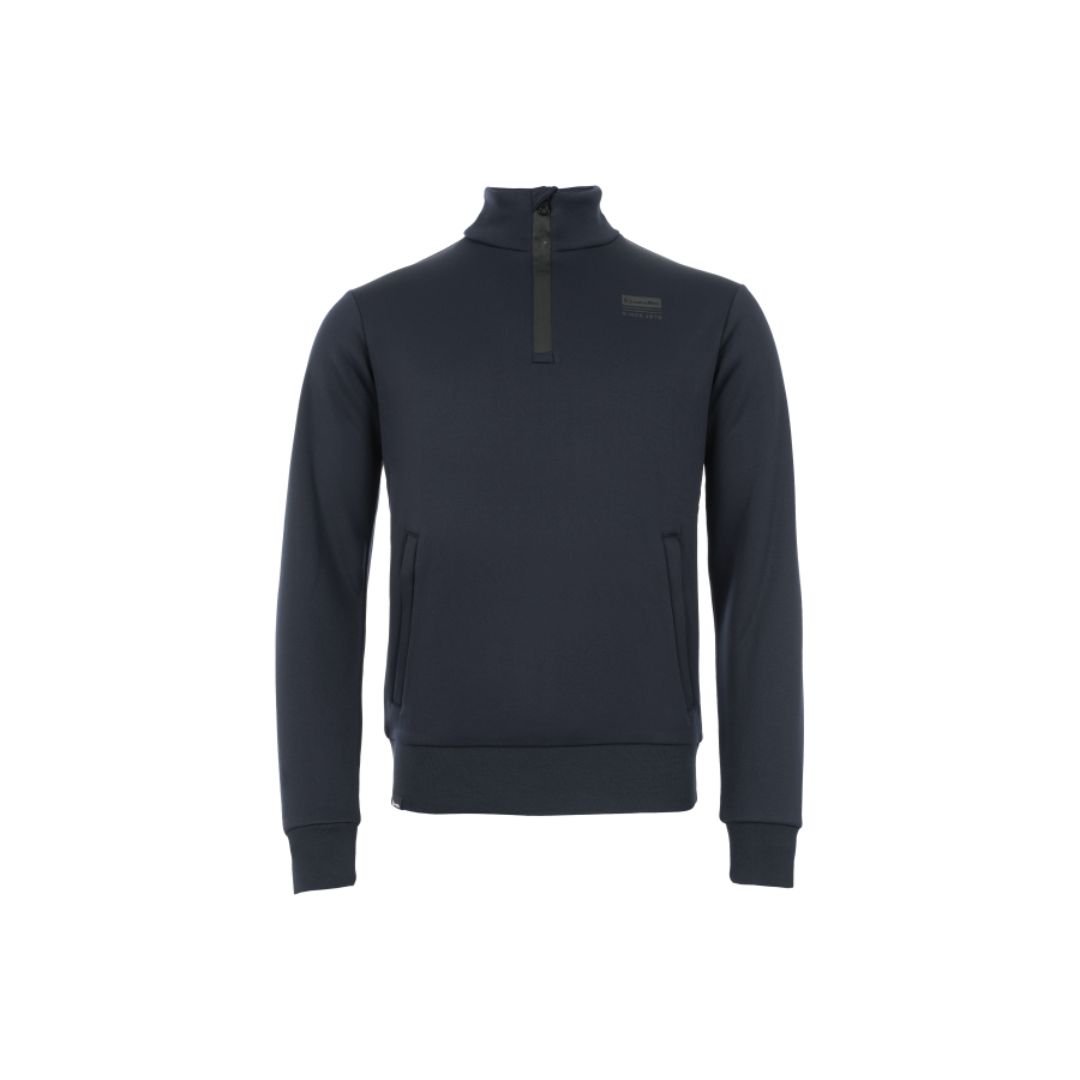 Elmo funktionsshirt til herre fra Cavallo er en afslappet, men sporty sweatshirt med ståkrave og half-zip lynlås. Har to store frontlommer med lynlås og rip kant ved håndled og bundkant.