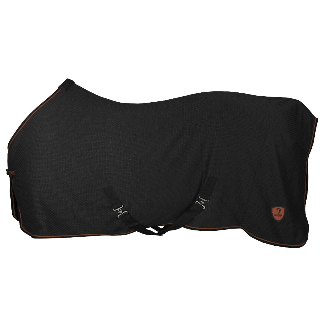 Bamboo tæppe fra Horka er et tætsiddende tæppe i eco venligt bambus materiale. Et blødt og behageligt materiale som er mere åndbart end bomuld. Tæppet har mange fordele, UV beskyttende, antistatisk og termo regulerende. Derudover fugttransporterende, antibakteriel og hyboallergenic. Tæppet har front lukning og ekstra beskyttelse ved manken, samt aftagelige gjordstropper og halesnor.