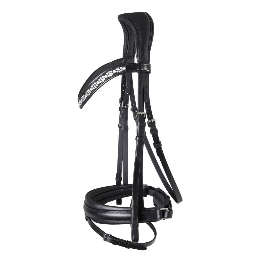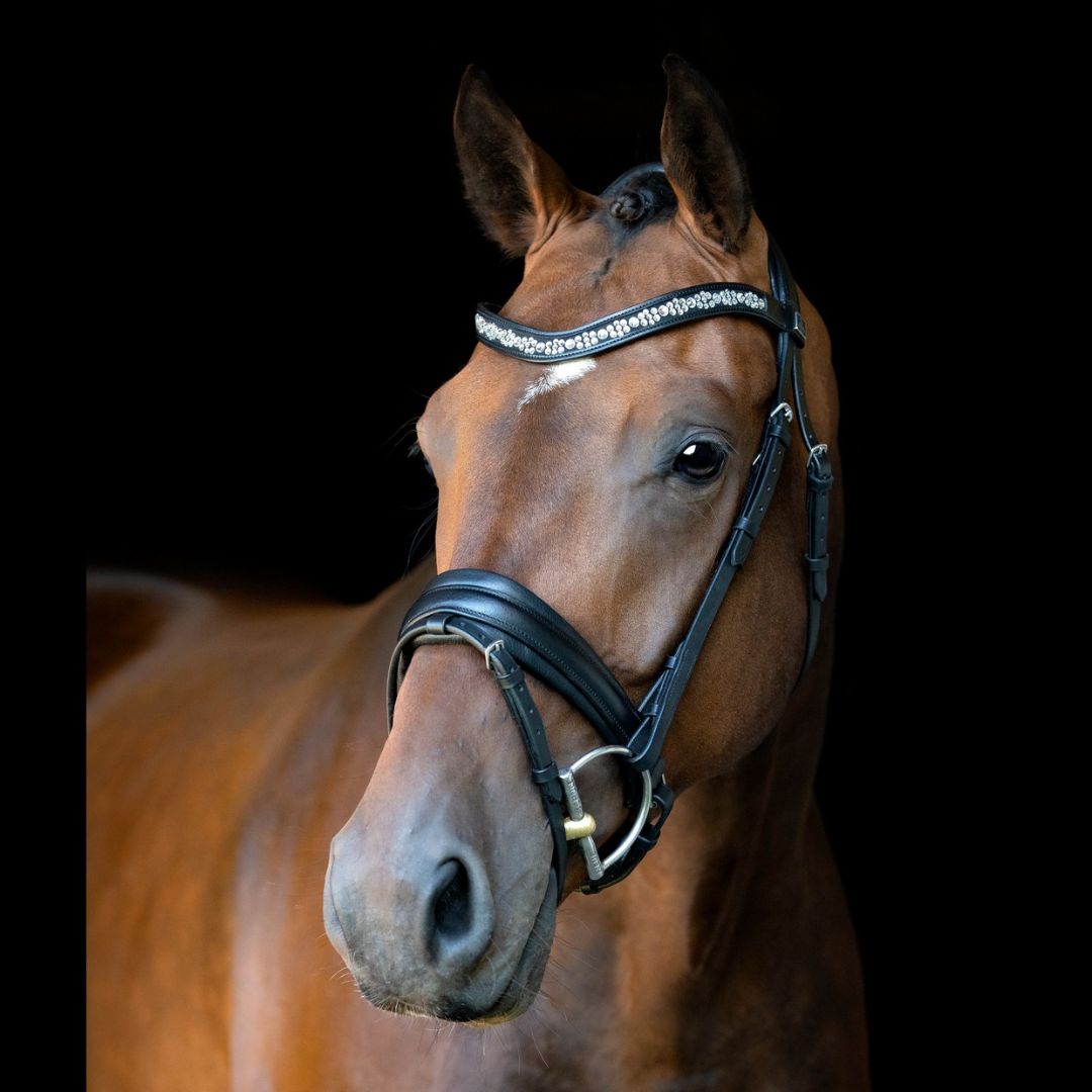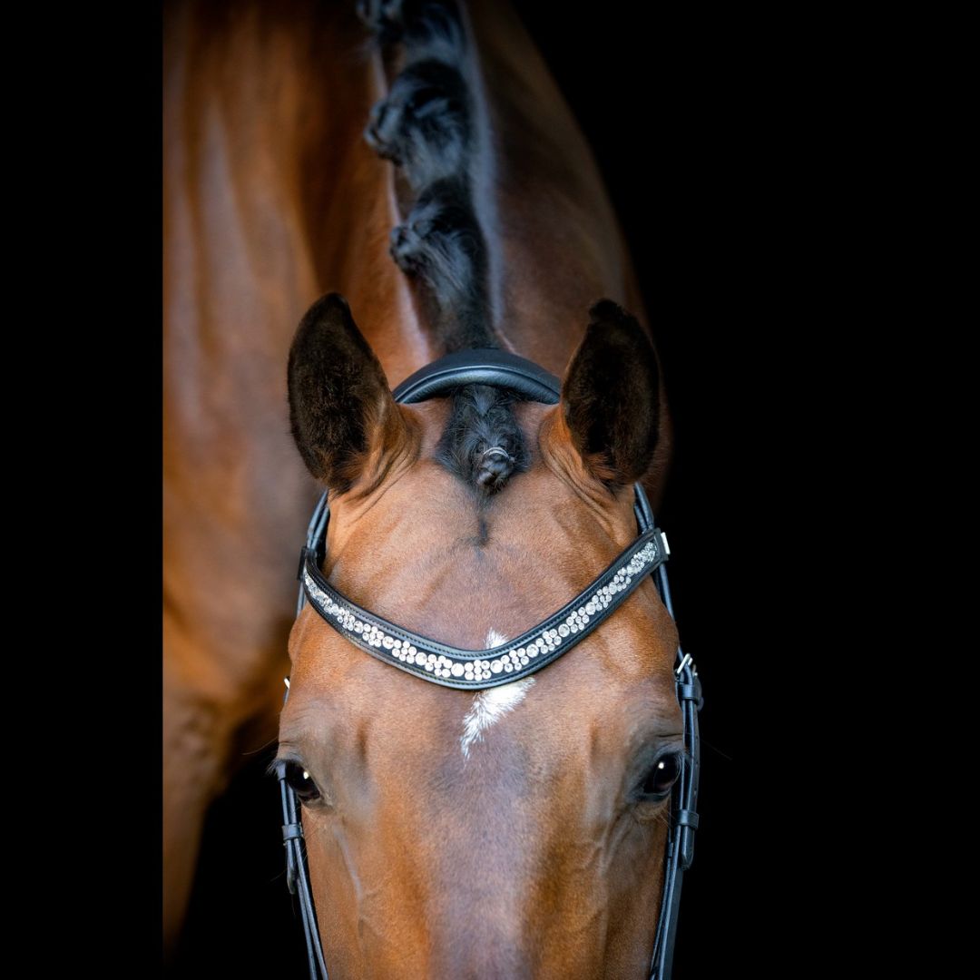 Millennium trense fra SD Design er fremstillet i ECO-friendly læder - det betyder at der ikke er brugt kemikalier i garvningsprocessen. Er håndlavet i et elegant og klassisk design der fremhæver hestens udtryk på bedste vis og er udformet til hestens anatomi. Trensen er med SD's special designede nakkestykke med et dobbelt lag af super soft neopren foring. Derudover er næsebåndet smallere i siderne, så der er god plads til biddet og og nerverne der omkring. Pandebåndet er unikt og er lavet med et mix af østrigske stellux krystaller som glitter om kap i solens stråler. Et SD pandebånd er ikke bare et pandebånd, men et unikt smykke lavet med kærlighed og passion til hesten.