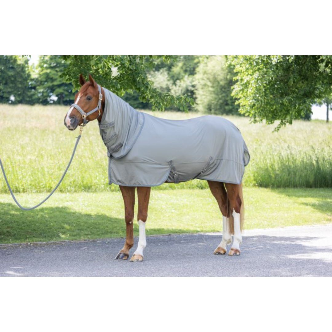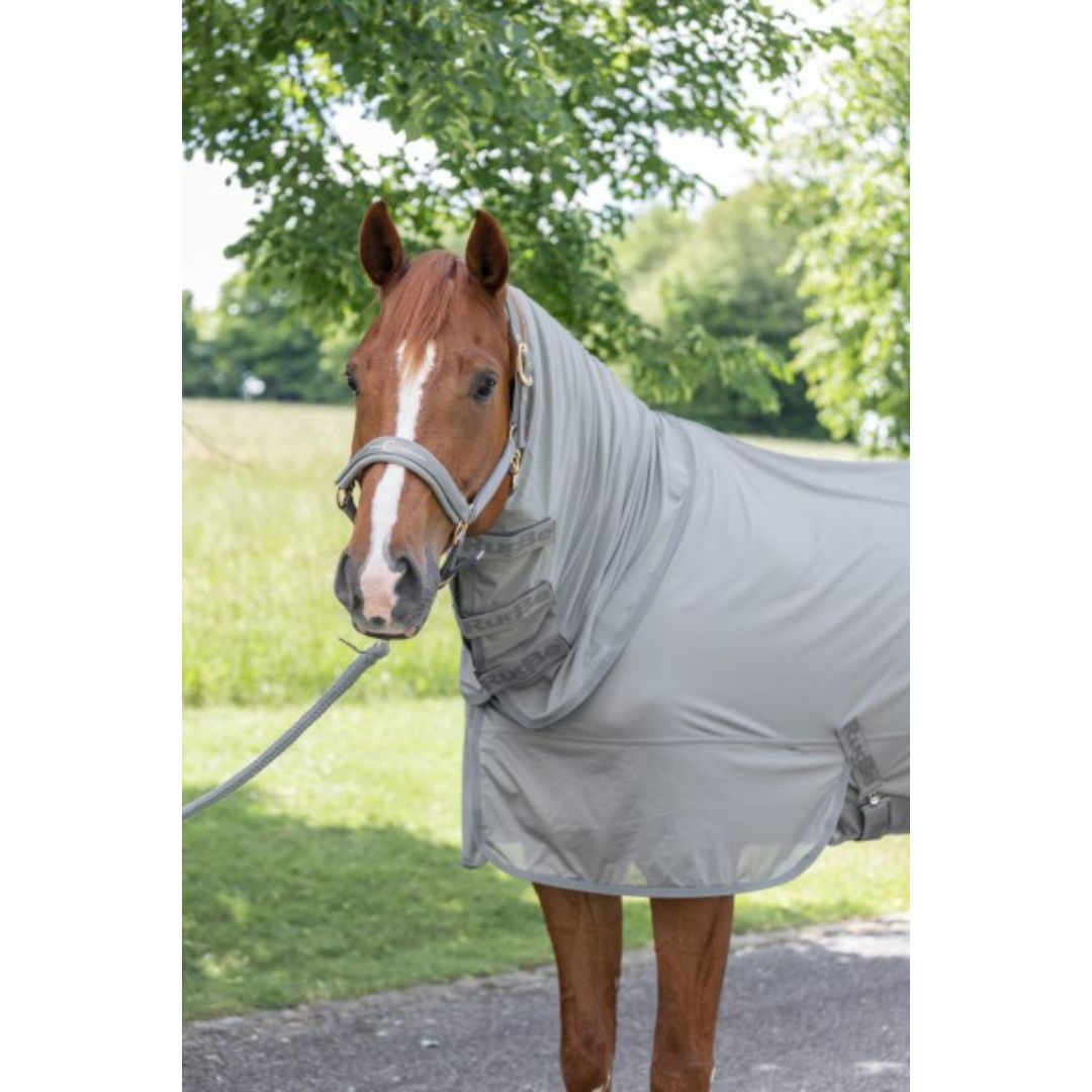 Insektdækken fra Covallieros forårs/sommer kollektion 2023. Et let insektdækken med aftagelige hals, til beskyttelse mod fluer. Fremstillet af let mesh og blød polyester som giver den perfekte beskyttelse mod stikkende og bidende insekter. Har kun en frontlukning, justerbare og aftagelige gjordstropper samt ben stropper og stor haleflap.
