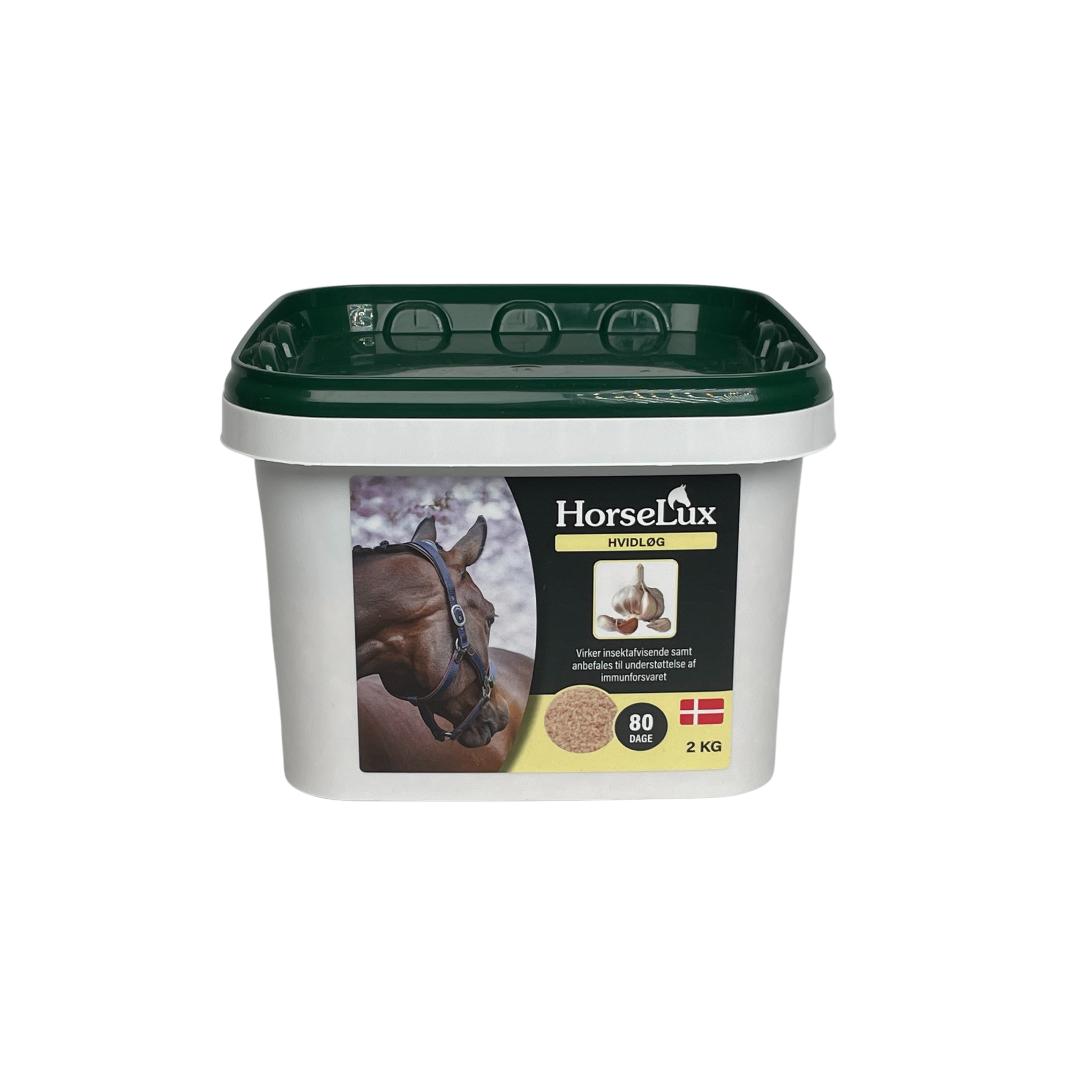 HorseLux Hvidløg er 100% rent, tørret hvidløgsgranulat med masser af velkendte sundhedsfremmende egenskaber. Det styrker hestens immunforsvar og kan også medvirke til at afskrække insekter og parasitter.