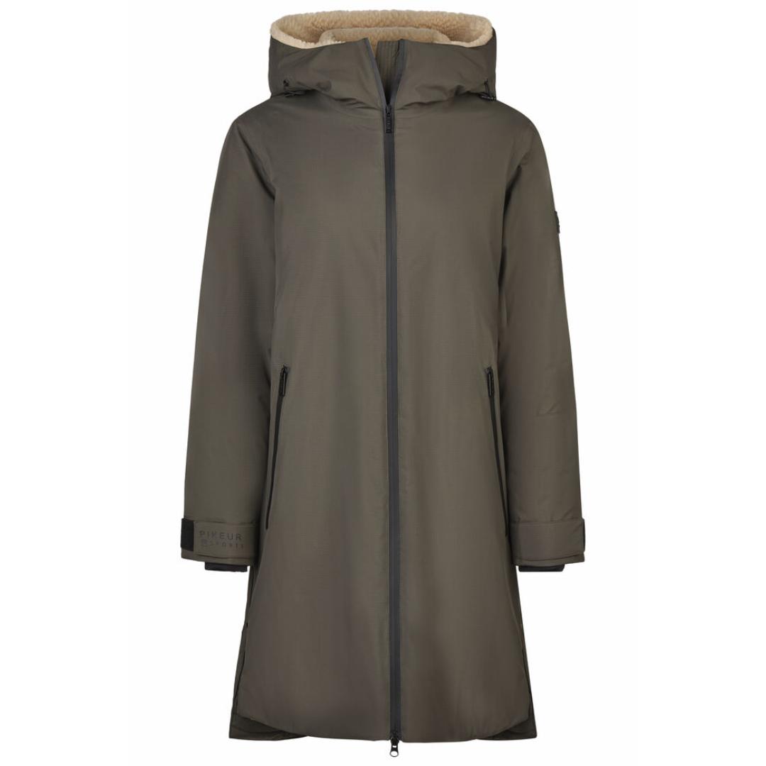 Lækker frakke fra Pikeur, med blødt teddy foer. Den er vind og vandafvisende. Den har rideslidser i begge sider. Hætten kan sættes fast med magnet bagpå. Der er velcro ved håndleddet, som man kan spænde ind.