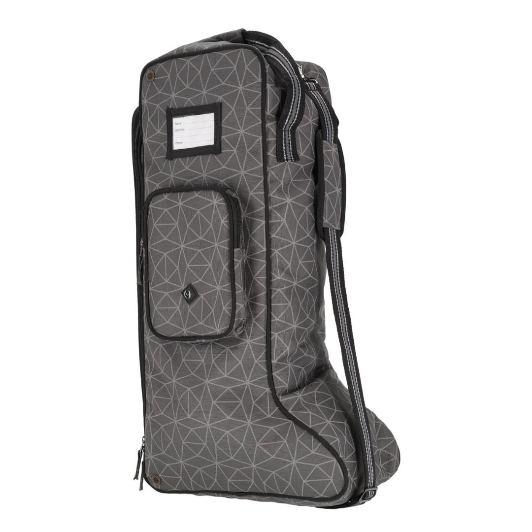 Støvletaske fra QHP i fint design med reflekser. Tasken har en skillevæg i midten, så ridestøvlerne ikke ridser hinanden og er godt beskyttet. Den har piskeholder på siden, samt en lomme på den anden side til fx nøgler eller lign. Den er lavet i et klassisk design og med hank og aftagelig skulderstrop.