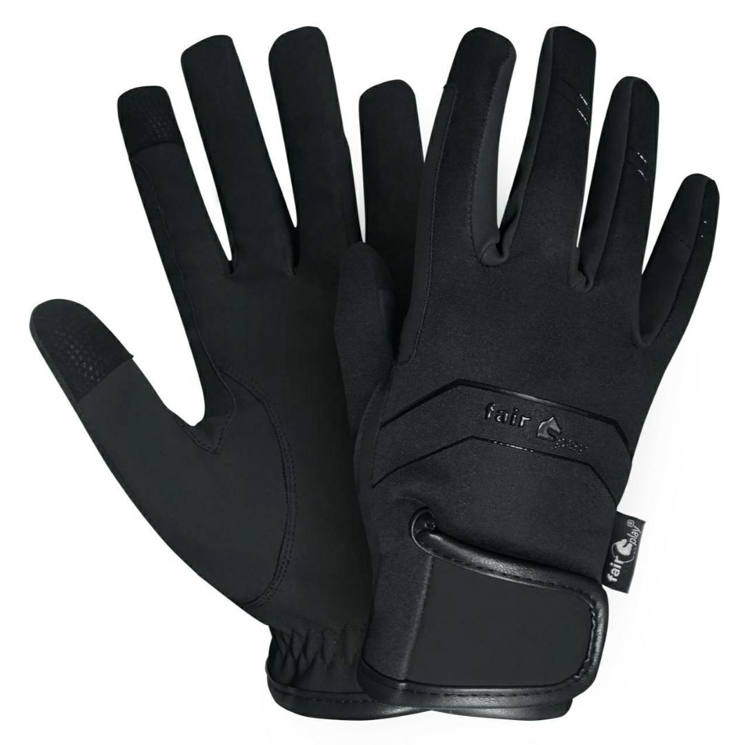 Vinter ridehandsker fra Fairplay. De har softshell yderfoer. De har silikone for bedre greb om tøjlerne.