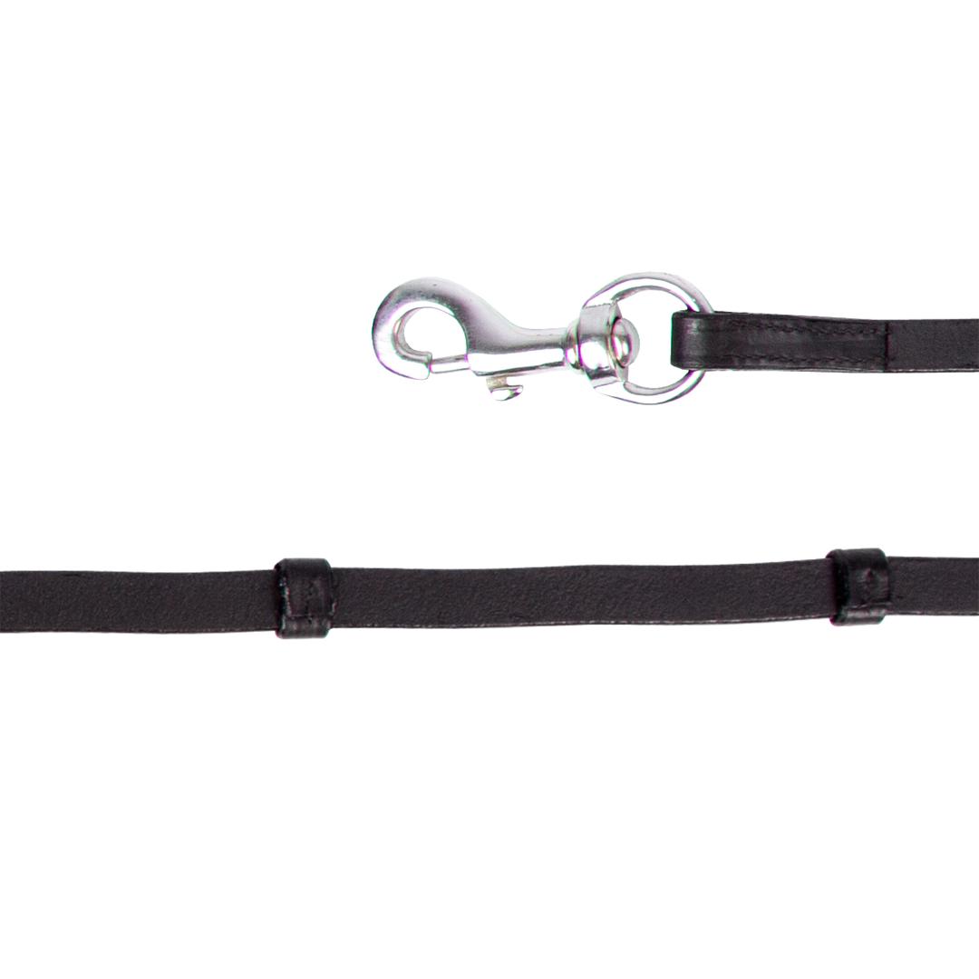 Waldhausen islændertøjler i læder. Den er udstyret med stoppere så rytters hånd ikke glider. Tøjlen har sølv karabinhage så den hurtigt kan tages af og på.