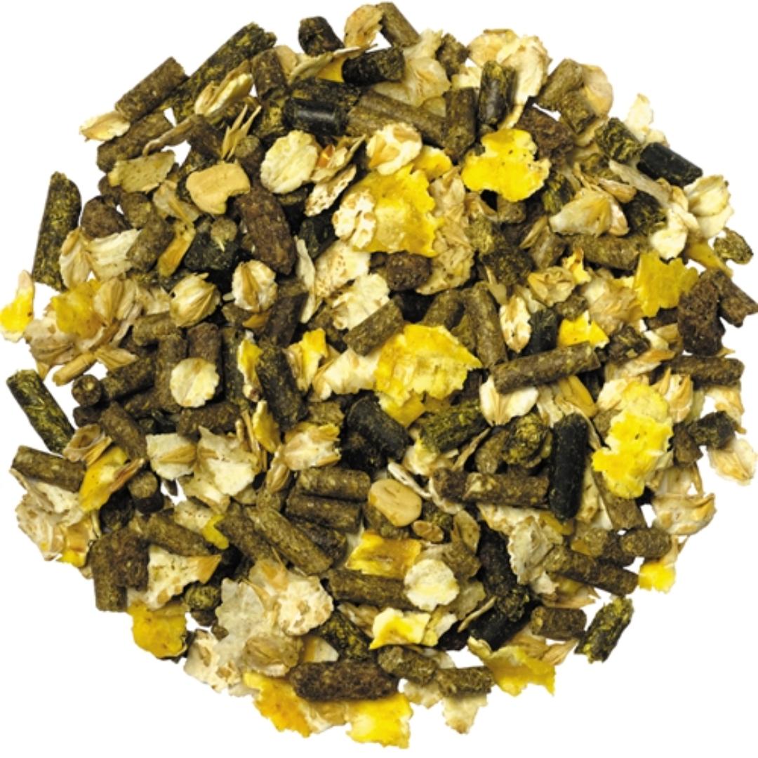 Sammensætning: Hvedeklid, bygflager, havreskaller, lucerne, majs, raps- og rapsmel, soya, Linamix®, majsflager, puffede korn, roefibre, ærteflager, hestebønneskaller, johannesbrød, brændenælde, rapsolie, hørfrøolie, Isomaltulose (Equisweet®), gulerodsflager, cikoriefibre, OS Complex, Digestive Support, naturlige antioxidanter