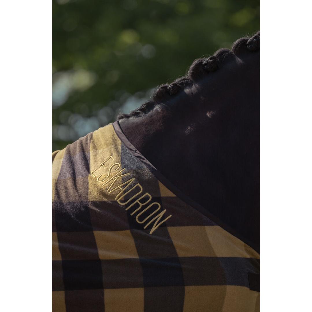 Lækkert fleecetæppe i høj kvalitet fra Eskadron. Den har et fint ternet mønsker. Bruges oftest som skridttæppe eller til transport, grundet dens gode egenskab med at transportere fugten væk fra hesten. Tæppet har 2 front lukninger, og aftagelige gjordstropper.
