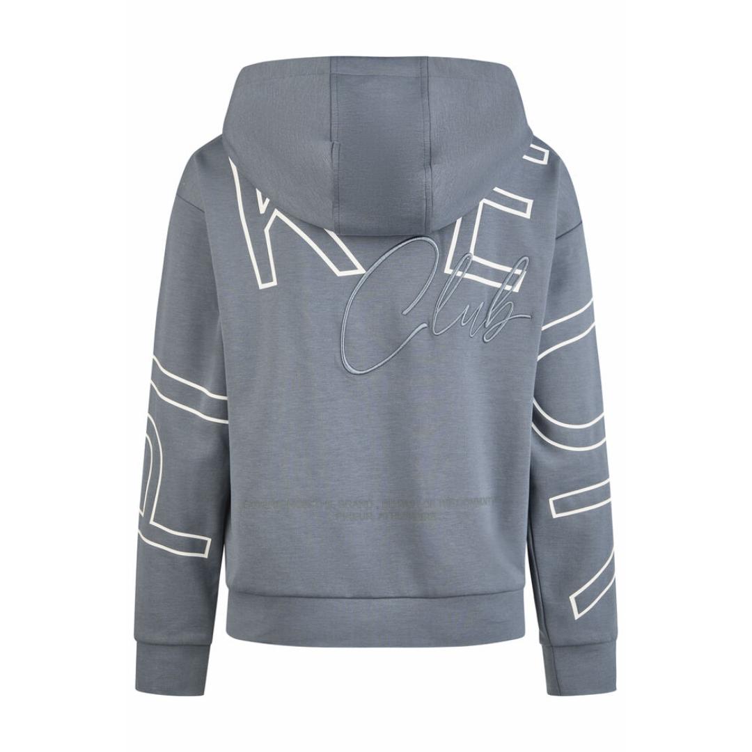 Lækker hættetrøje fra Pikeur. Den er en smule oversize. Den har en rib kant for neden, og ved ærmekanten. Den har Pikeur stående bagpå henover ryggen og ærmerne.