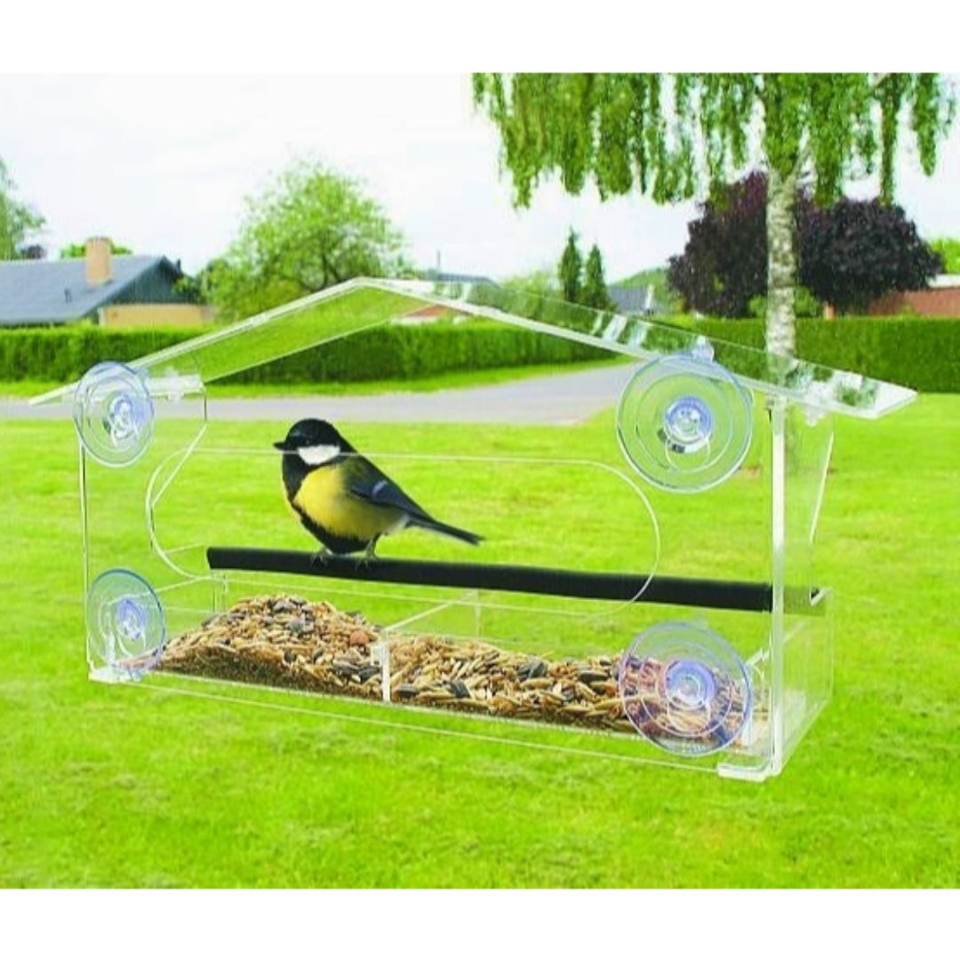 Nyd fuglene inde fra stuen med et smart foderhus til at sætte på vinduet. Det er lavet i 3 mm acrylplade med huller i bunden, så vand kan løbe fra. Monteres på vinduet med 4 kraftige sugekopper. Foderbakken kan nemt tages af for rengøring