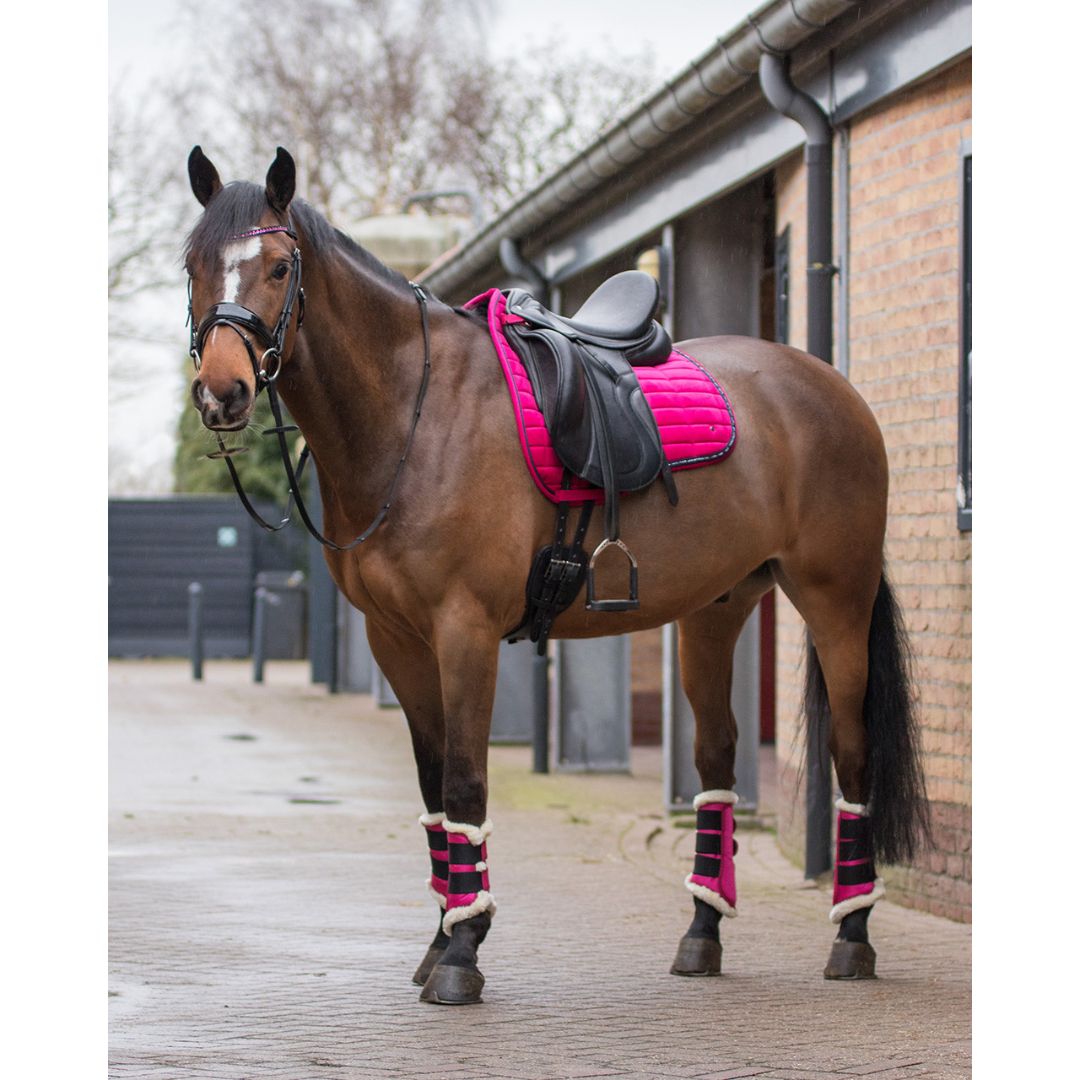 Astana gamachen fra QHP er en flot og blød gamacher med imiteret lam på indersiden. Lukkes med velcro og kan bruges til både for-og bagben.